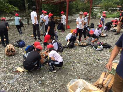 今から、カレーづくり。火おこしからです。