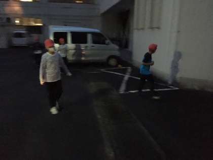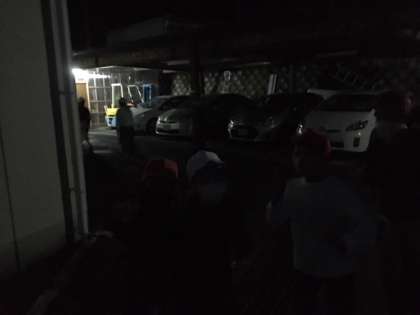 さあ、最後のプログラム。ナイトハイクです。役場の駐車場を使わせていただきました。