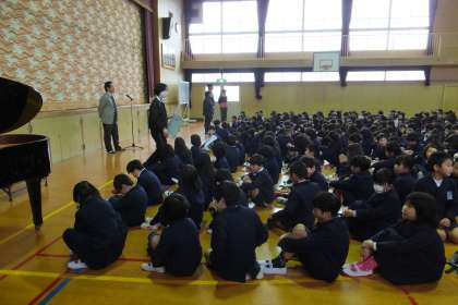始業式では、校歌を大きな声で歌い、校長先生の話や生活指導の先生の話をしっかり聞いていました。