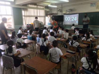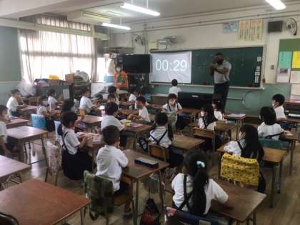 テーマ「1〜10までを英語で言おう」ということで、最後は「one」「two」「three」と一人一つずつ順番にいう活動をしていました。30秒以内で全員にまわるのかというゲームもしていて盛り上がっていました。