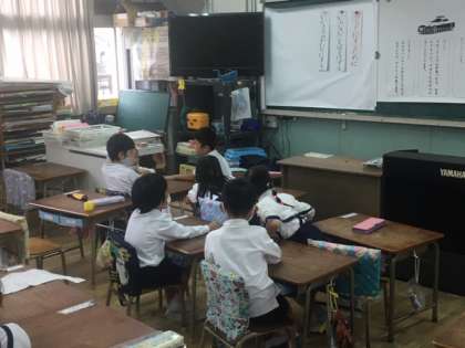「いろいろなふね」の説明文を学習した1年生。次は学習したことを生かしていろいろな自動車について書かれている文章から自動車カードを作る活動をしています。