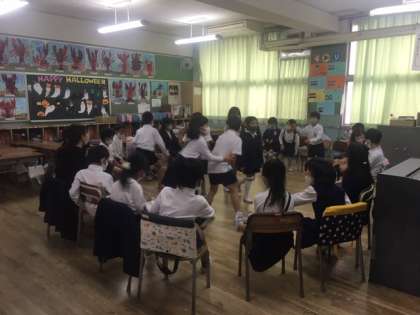 みんなで「なんでもバスケット」をしたり、歌を歌ったりと最後に実習生の先生とたくさん思い出を作りました。