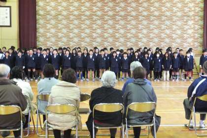 また、今回は、4年生が140周年記念行事の時に披露した「140周年、おめでとうの歌」もお礼として歌いました。