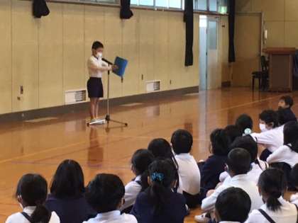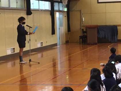 校長先生の話に続き3年と6年の代表児童が、がんばることを発表しました。