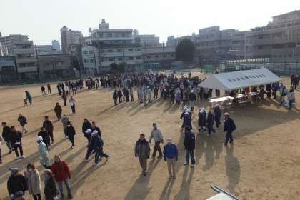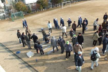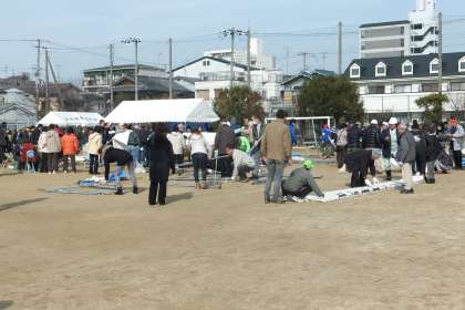 最初は、各町会でテントを張る訓練から始められました。