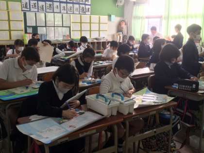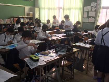 絵を仕上げている児童や粘土で立体作品作りに取りかかっている児童がいました。
