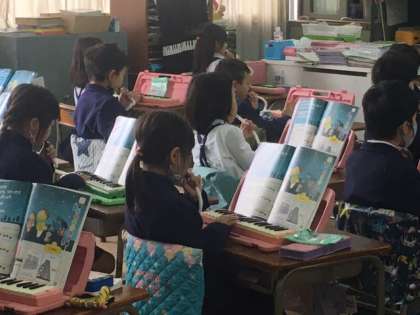 先生のオルガンに合わせて何度も練習し、指づかいがどんどん上達していきました。