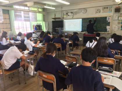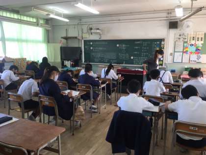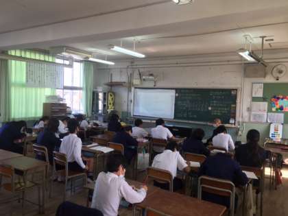 2時間目は、外国語、図工、社会とクラスによって活動が異なりました。図工では、白いマスクに好きな柄や絵を描いてオリジナルマスクを作っていました。
