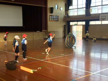 ケンステップやラダーを使って、両足や片足でリズムよく跳ぶ運動や、縄跳びをしていました。