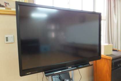 1月30日(金)、先日、校長戦略予算加算配当で購入した電子黒板が届きました。まだ、取り扱いの研修をしていないので、多目的室に保管してあります。
