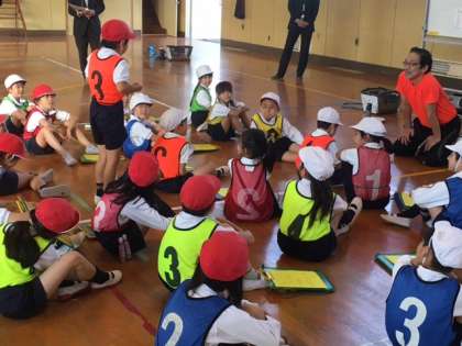 この授業は、大阪市教育研究会の体育部の研究授業を兼ねていたので、多数の参観者がいたのですが、みんないつも通り楽しんで取り組んでいました。