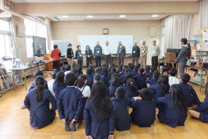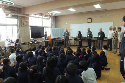 最後に、多目的室でいろいろ並んだ「むかしの道具」を説明していただきました。「これは何に使うものだと思いますか?」という質問に、子どもたちが答えますが、なかなか正解の出ないものもありました。みんな、とても楽しそうでした!!