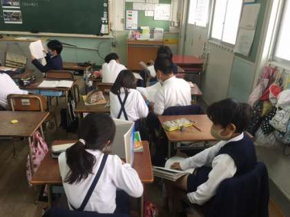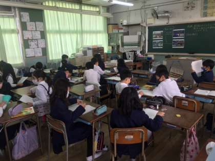 子どもたちからは、教室の照明以外にも、街のイルミネーション、車などの乗り物のライト、冷蔵庫の中など、たくさんの意見が上がりました。ペアでの意見交流もとても活発に行われていました。