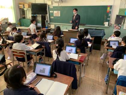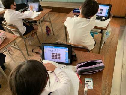 子どもたちは、それぞれがタブレット端末を使いながら解き方を考えました。