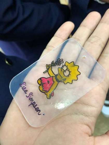 シートにサインペンで好きな絵を描き、オーブンで加熱すると、縮んで固いプレートになりました。