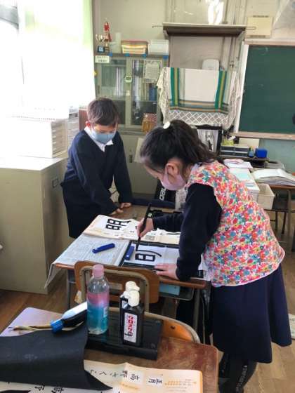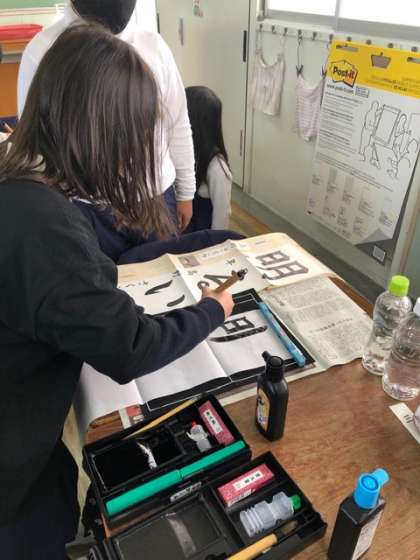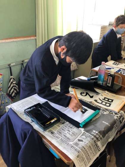 お手本を見ながら、一画一画気をつけて筆を進めていました。