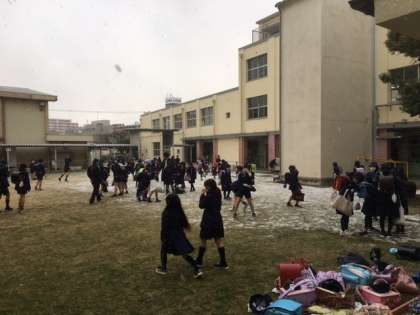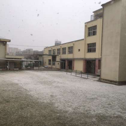 昨日よりさらに寒さが増した今日、6時間目の途中から雪が降り出しました。
