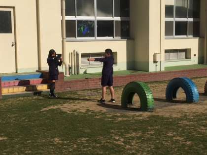 ボールを投げている瞬間、跳んでいる瞬間などを撮るために何度もペアで写真を撮り直していました。