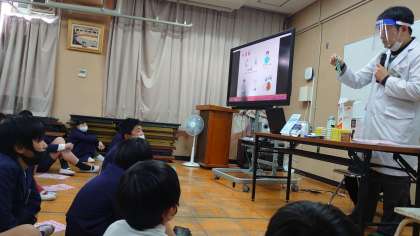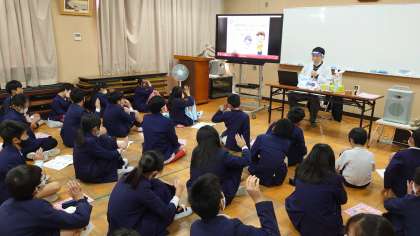 薬剤師の先生を招いて、6年生が「くすりの正しい使い方」について学びました。