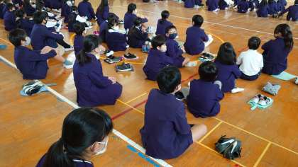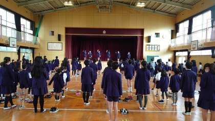 今朝は、1年生と6年生のペアでなかよし集会がありました。