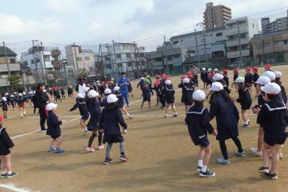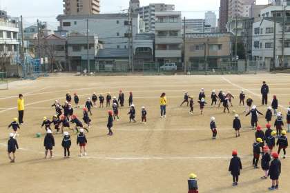 最初は、少しモジモジしていたけれど、すぐにヒートアップ、みんなでボールを追いかけ、歓声を上げていました。