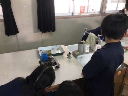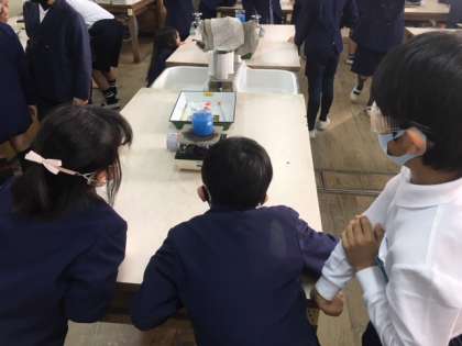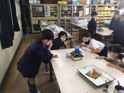 試験管よりも大きいビーカーの水を温めたので、水が対流する様子を観察することができました。