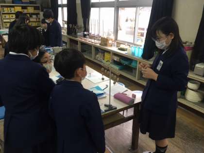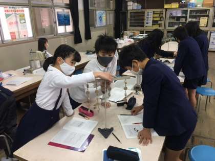 てこのうでにかかる大きさは「支点からの距離×おもりの重さ」ということを実験で明らかにした後、最後にそれを生かして20個のおもり全てを吊るして、てこをつり合わせる活動をしました。