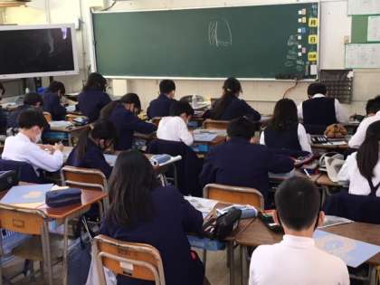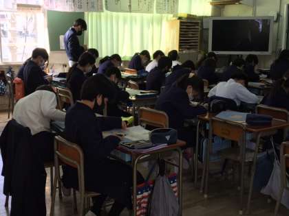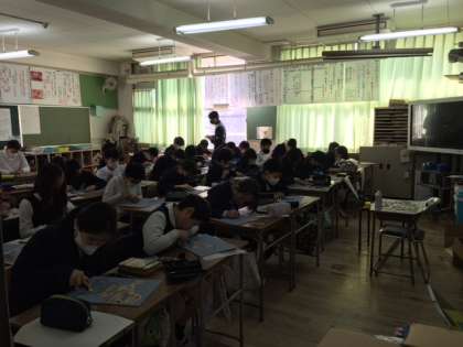 みんな集中して彫刻刀を動かして板を掘り進めていました。