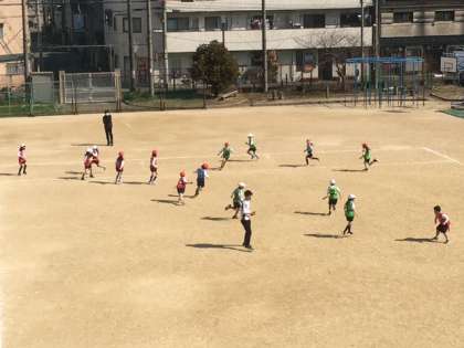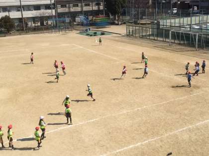 合図とともにコートに散らばり、相手のベルトについたタグを取りにいくのですが、どんどんと突撃していくチームもあれば、積極的には攻めないで、みんなで固まって動くチームなど、なかなか戦術面での違いがあって、見ていて面白かったです。