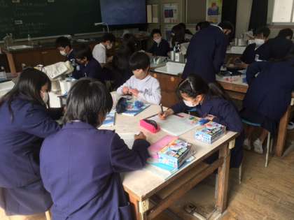 その後は、発光ダイオードを手回し発電機につなぎ光らすことで、発光ダイオードと豆電球の違いを見つけ出しました。子どもたちは、電流が逆向きになると発光ダイオードは光らないなど、気づいたことをいろいろノートに記述していました。