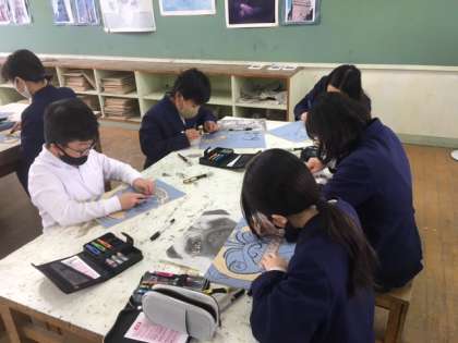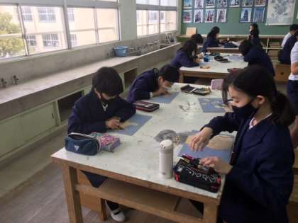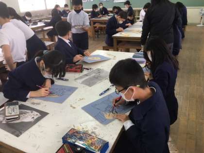 全体的にだいぶ彫り進んできており、もう刷り始めている児童もいました。