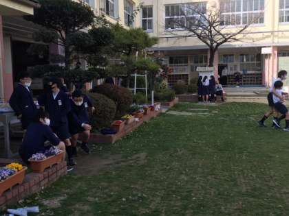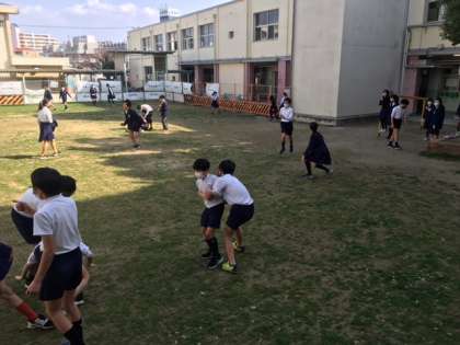 今日の6時間目、学年内のお別れ会ということで、みんなで中運動場で過ごしました。