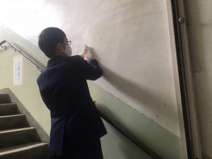 普段はあまり掃除をしない壁や、特別教室の窓などきれいにしました。