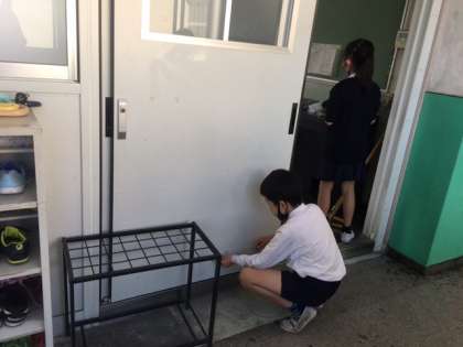 ドアや傘立てまでピカピカになるように頑張っていました!!