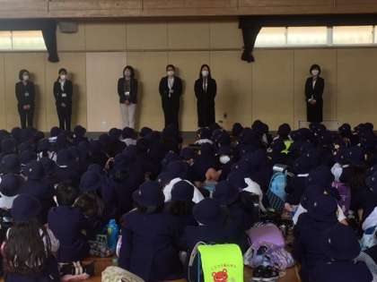 始業式では、校長先生のお話や離着任した先生の紹介、そして担任の先生をはじめとする教職員の紹介がありました。