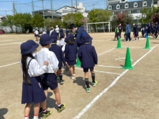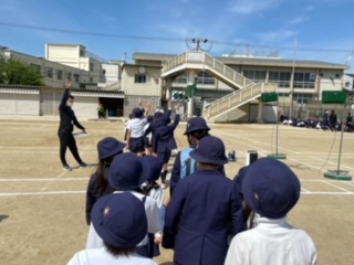 今日は、春の交通安全教室を全校児童揃って行いました。