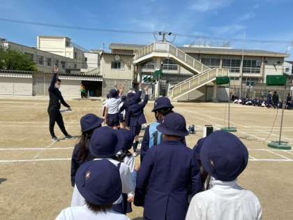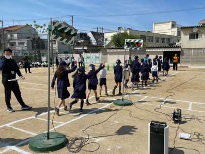 今日は、春の交通安全教室を全校児童揃って行いました。