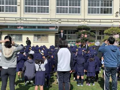 初めて学年そろっての児童朝会は、どの学年もしっかりとお話が聞けていました。楽しいことを見つけて小学校生活過ごしてくださいね。