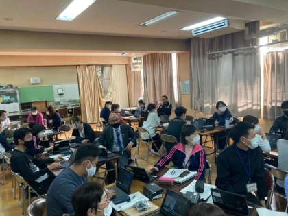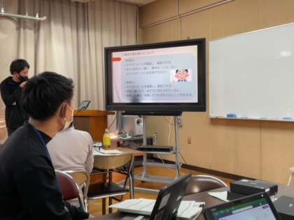 緊急時に家に持って帰って通信ができるよう、Teamsでメッセージ入力・通知設定・会議・便利技など教職員同士で研修をし、スキルを身につけていきました。