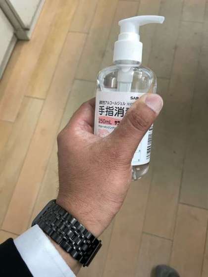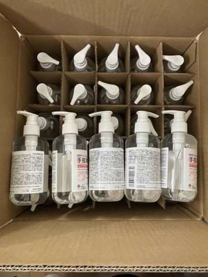 今日は校区内の企業さんから、児童全員、教職員全員に消毒アルコールジェルが無料提供されました。