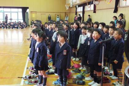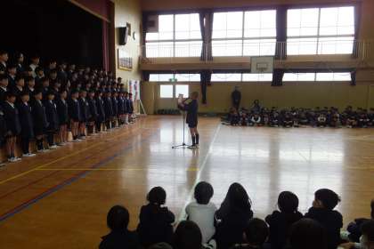 1年生は歌を歌い、2年生は手話歌を贈りました。