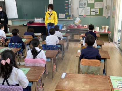 1年生のそれぞれの教室で、行き帰りの防犯のお話を分かりやすくお話ししてくださいました。
