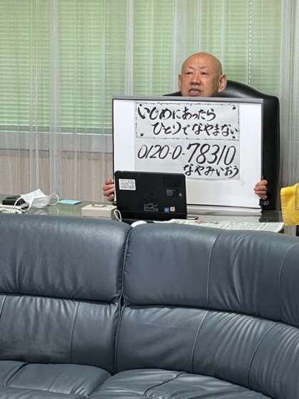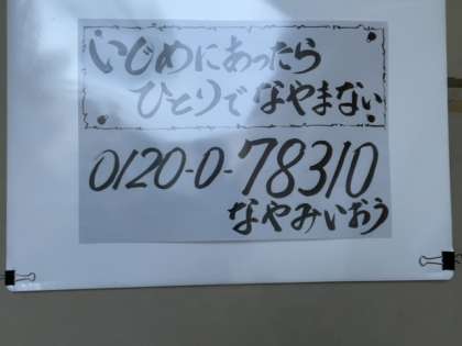 校長室のドアには、いじめホットラインの電話番号が掲げられています。