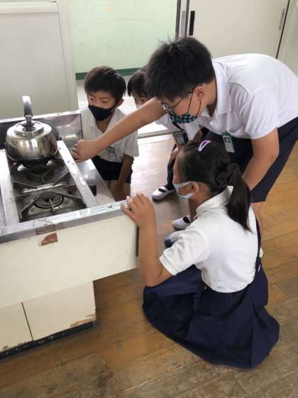 理科ではカセットコンロを使ったことはありますが、ガスの元栓があったり、ツマミにはメモリが無かったりと、色々と違うところもあるので、火をつける際はドキドキしている様子でした。