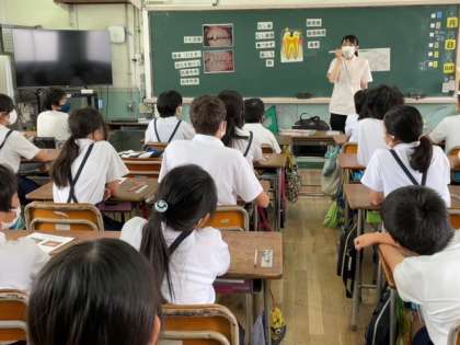今日は6年生対象に、歯と口の健康教室が開かれました。まずは、健康度(好き嫌い、噛む回数、おやつの食べ方(だらだら食い)、歯磨き、歯垢など)をチェック。その後は、写真を見ながら、歯茎の腫れや歯周病菌の話がありました。歯周病菌によって、支えのある骨が溶けて、歯が抜けてしまうこと。またそのことによって、横の歯にも影響が出ることなどを学習しました。