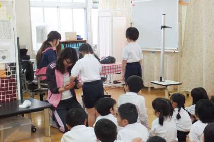 小学校で初めての発育測定なので、保健室の先生から説明を聞き、身長・体重・座高を計測しました。6年生とは平均で体重は約17キログラム、身長は約29センチメートルも違います。