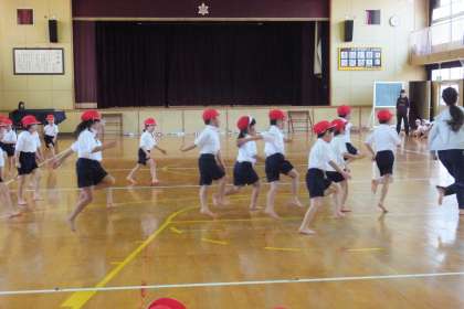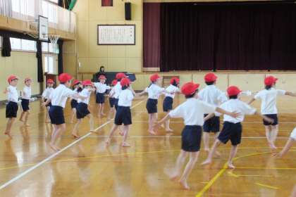 スキップをしたり、ギャロップをしたり、子どもたちは楽しそうにからだを動かしていました。