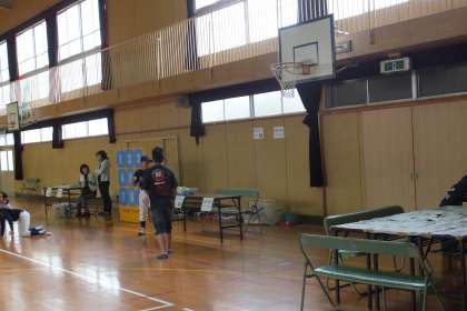 会場の体育館では、各スポーツクラブがいろいろなゲームのコーナーの準備を進めています。また、カレーライスやフランクフルトも振る舞われます!!