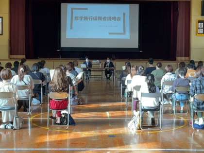 13日(水)放課後、6年生の保護者の方々を対象とした、修学旅行説明会を体育館で行いました。たくさんの保護者の方々がお集まりいただき、ありがとうございました。
