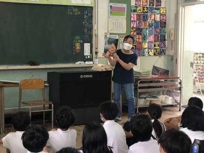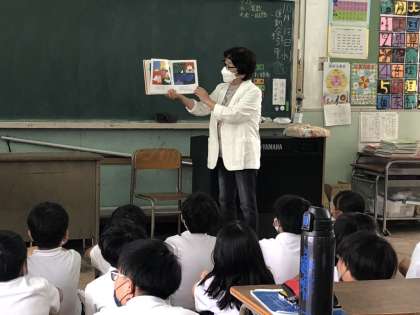 5年生も、おはなしパレットさんからのお話の世界にのめり込んでいました。高学年においてもやはり本の世界から、たくさんの想像力が膨らみ、豊かな心が育って、キラキラとした輝いた目で読み聞かせを聞いている様子を感じました。